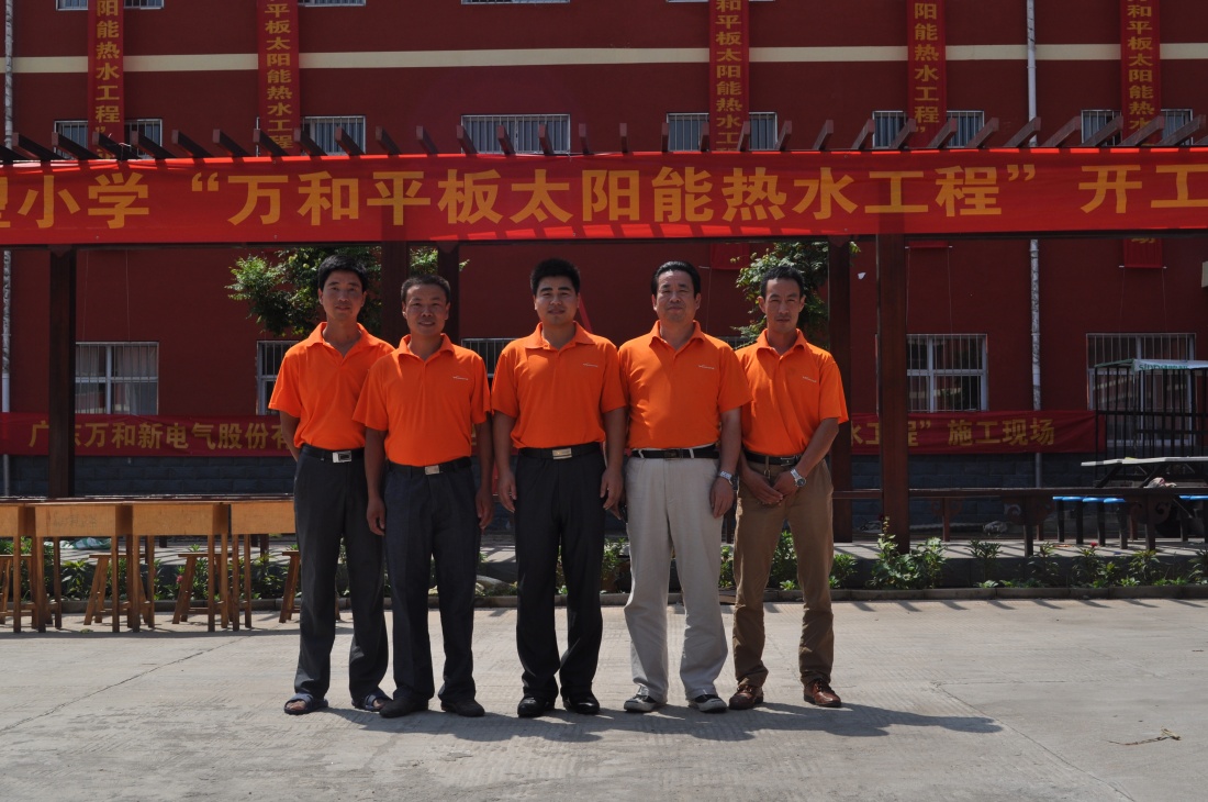 南凹广艺希望小学采用平板太阳能集热器+空气源热泵热水系统供应日常卫生热水。