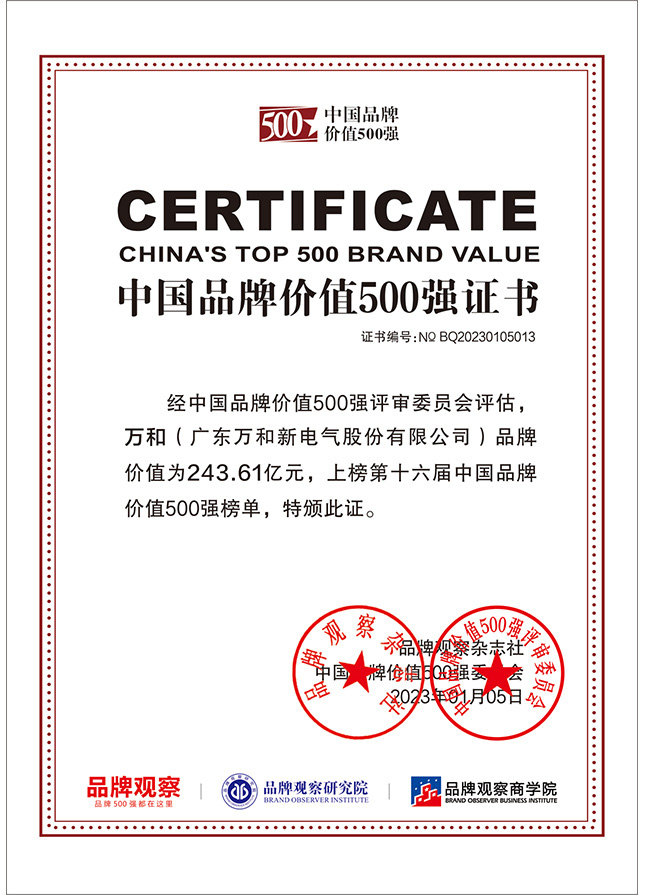 中国品牌价值500强证书