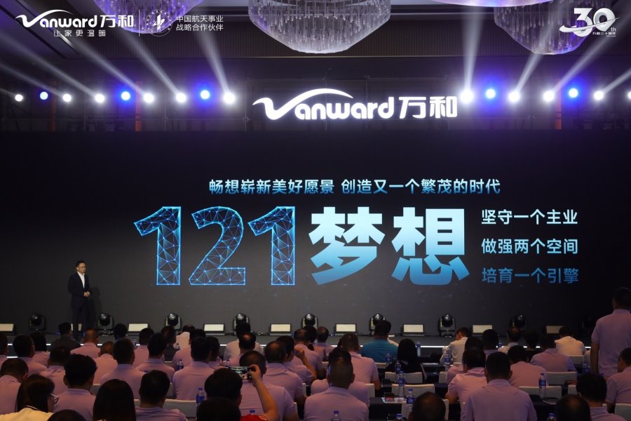 向新而生,坚定生长。站在新征程的起点,发布会上,赖育文正式发布万和“121”梦想战略,即坚守燃气具一个主业,坚定做大厨房和卫浴两大空间,坚持培育一个新引擎。