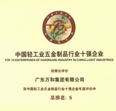 "蜜桃影视高清" 万和位列“中国轻工业五金制品行业十强企业”前五