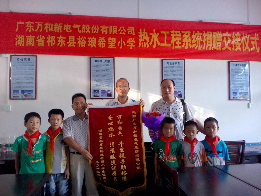 万和作为生活热水行业的领航者,时刻关注民生,践行一个企业的社会责任。在充分了解了当地这些希望小学的情况后,对河北行唐县南凹广艺希望小学、湖南祁东县裕琅希望小学、安徽霍山县落儿岭镇海尔希望学校进行了热水系统的捐赠。