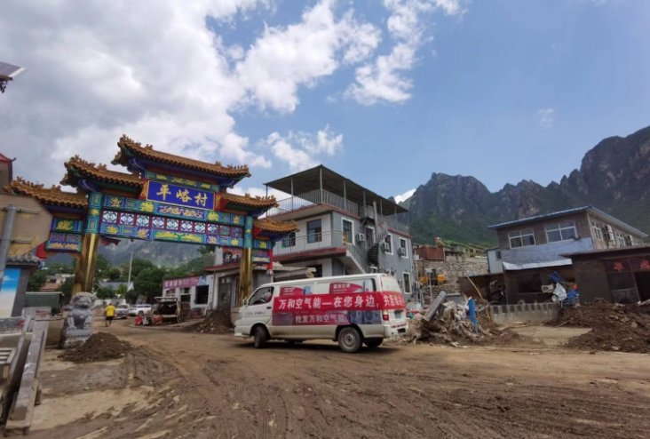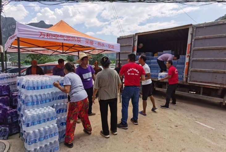 8月13日,万和新能源事业部委派销售部、市场部,联合万和空气能北京市房山代理商,采购了一部分生活物资,包括消毒液、饮用水、食品等,派出专车送达房山区十渡镇,直接派发到受灾严重的部分村落村民手中。