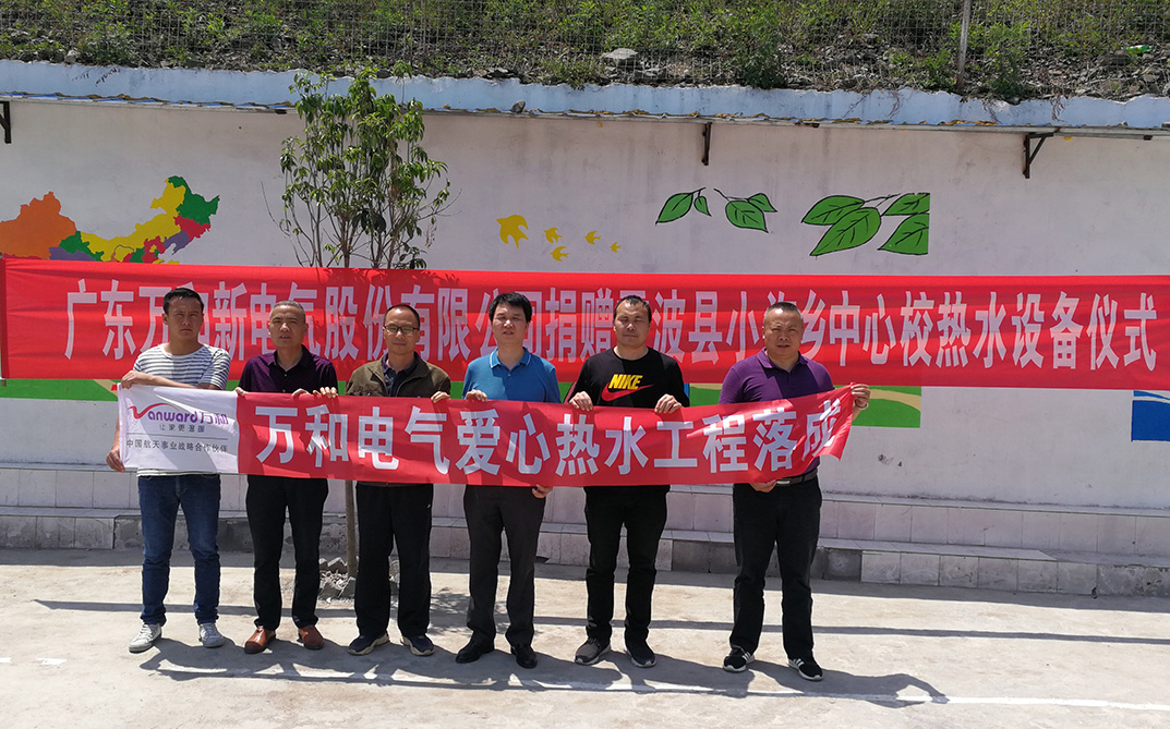 在2018年年底,万和响应佛山政府对口扶贫号召,在顺德区政府对口凉山扶贫协作工作组驻雷波工作小组的牵线下,在雷波县为两所乡村学校捐建“爱心热水工程”,经过几个月的紧张施工,工程已于4月中旬交付使用。