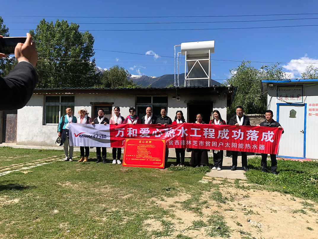 因林芝市察隅县位于天气恶劣、交通不便的高海拔地区,此次捐建的爱心热水工程,选用了万和自己生产的平板太阳能热水器。早在2015年,由万和生产的150升紧凑式平板型太阳能热水器(北方型)成功在西藏墨竹工卡县日多乡安装并投入运行,这标志着万和平板太阳能热水产品首次登陆有着“世界屋脊”之称的西藏地区。经过多年运行,万和的平板太阳能热水产品经历了西藏地区高海拔地理条件、气候变化异常剧烈、自然灾害频繁、西藏地区水质较硬的各种考验,完全适宜这一地区的用户使用。